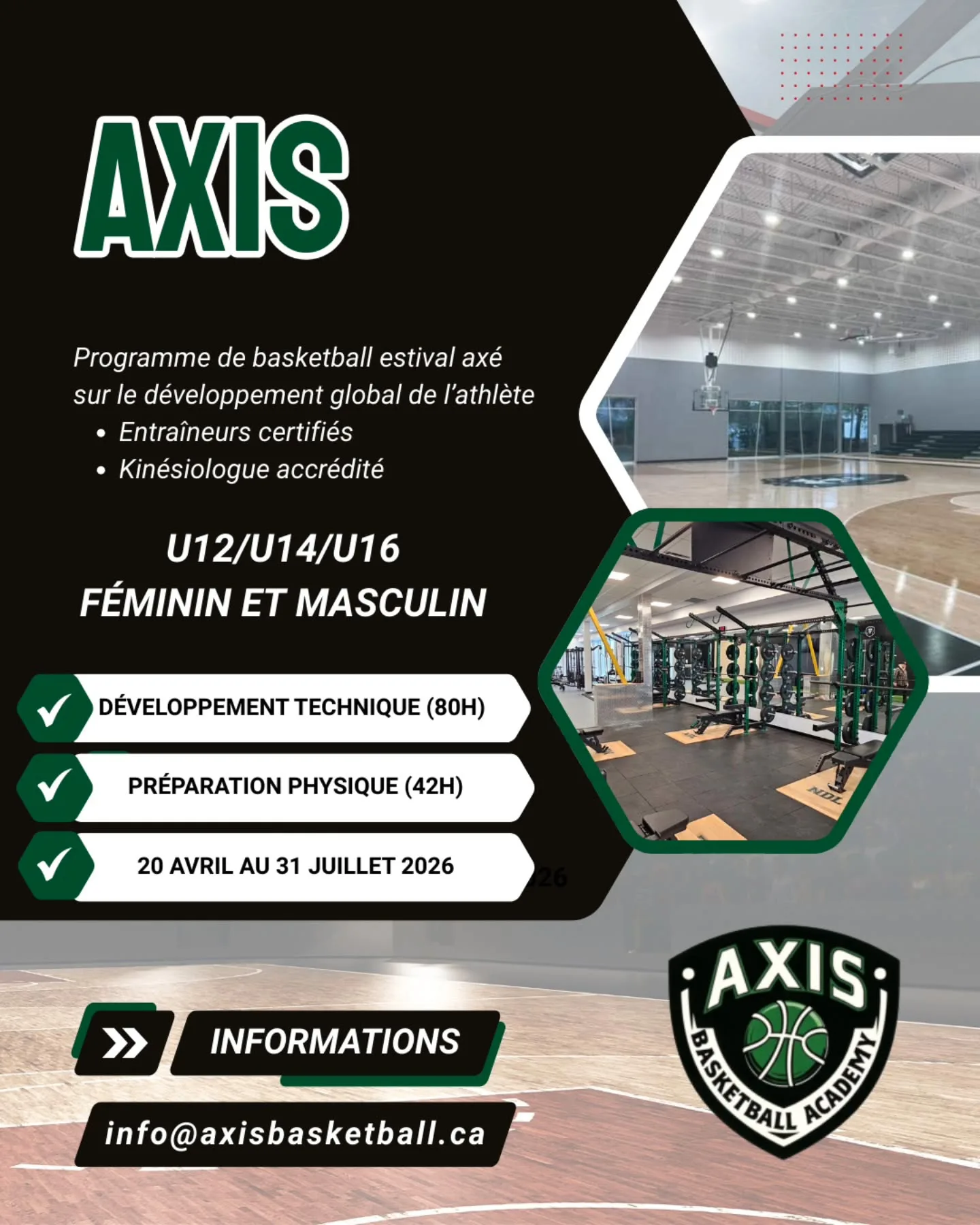 Pour plus d’informations, communiquez avec l’équipe d’AXIS à l’adresse suivante : info@axisbasketball.ca